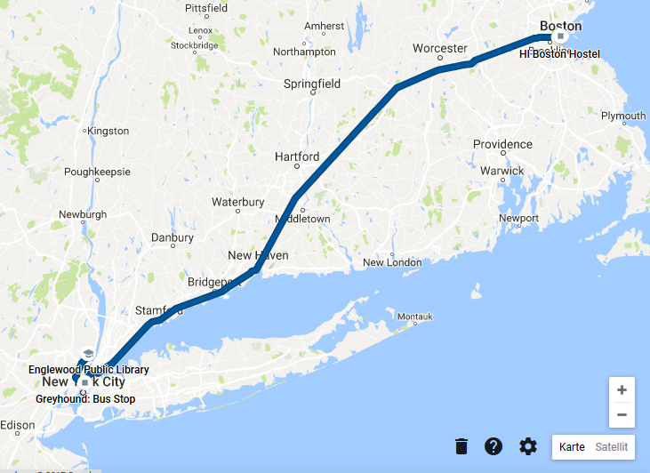 In der Früh gegen halb acht ging es am Mittwoch, 23.08.2017 vom Appartment in Englewood los. 1. Stop war New York City, wo der Reisebus nach Boston losfuhr. Da ich frühzeitig das Ticket abholen musste, hatte ich noch eine gute Stunde Zeit, bis der Bus abfuhr. Habe dabei einfach eine kleine Rundtour um den Busbahnhof gemacht und dabei zum Beispiel die Scientology Kirche entdeckt. Sieht von außen gar nicht so spektakulär aus.
